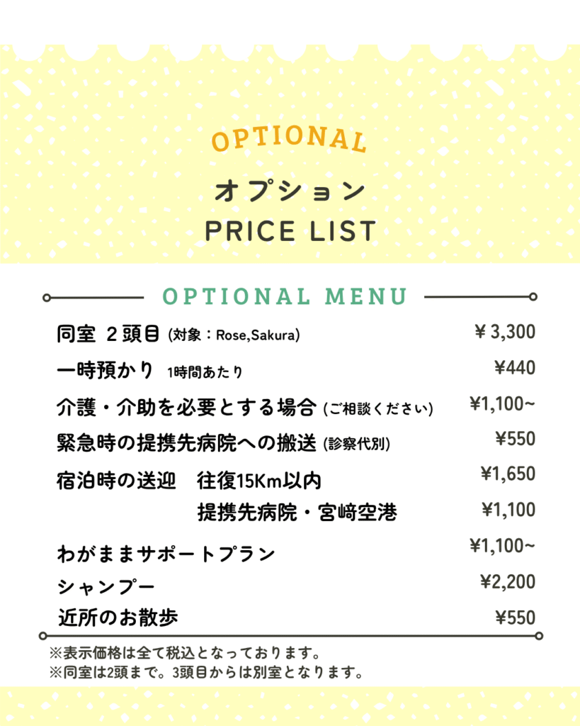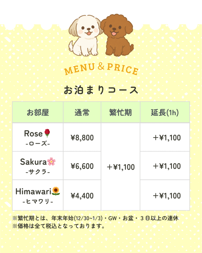 ※お泊まりコースは1泊あたりの料金です。