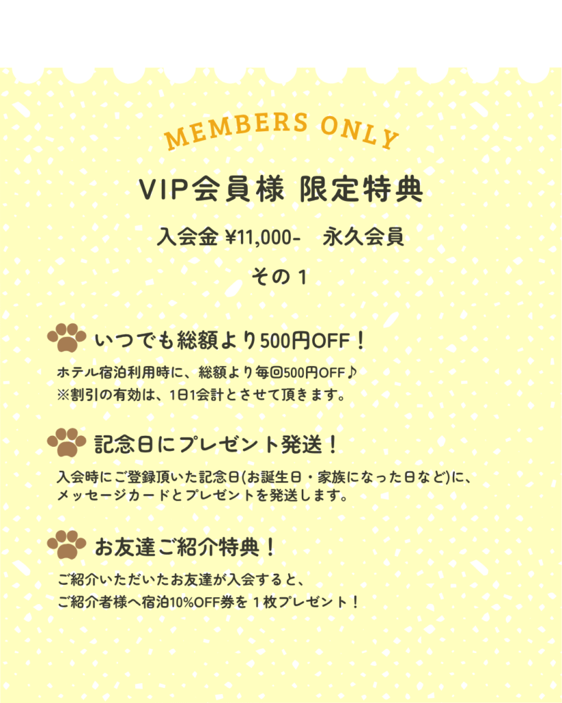 ※わんちゃん1頭につき、入会金¥11,000(税込)がかかります。永久会員制度です。